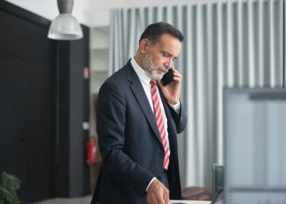 office man standing while on phone