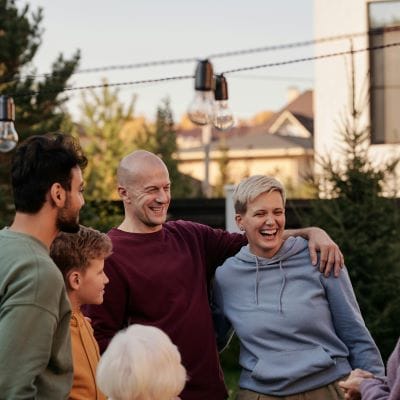 happy man with family and friends