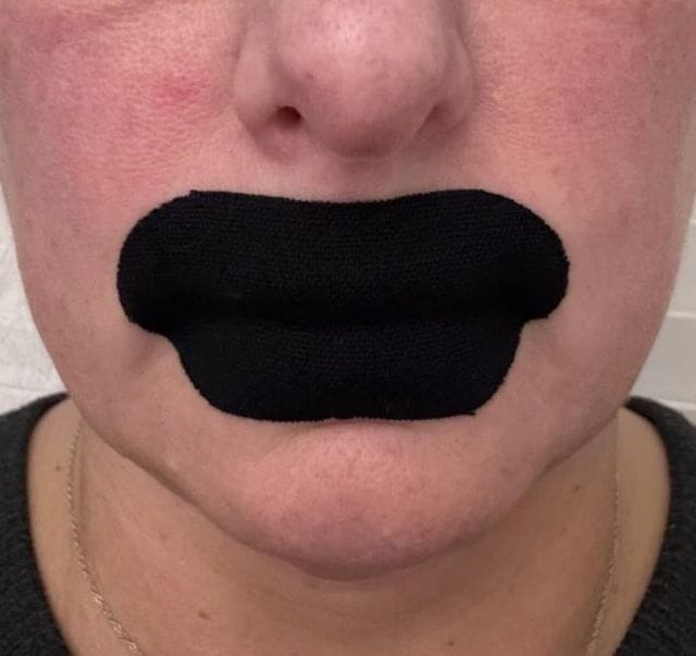 man with mouth tape
